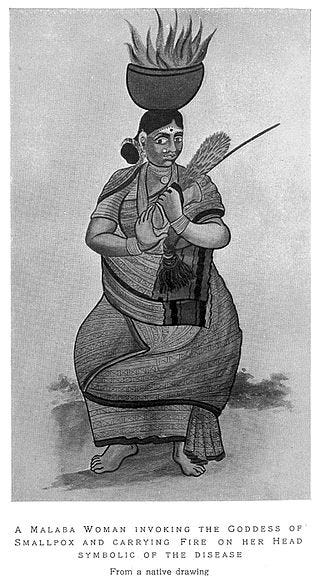 The goddess to which an offering was to be made was Sitala, the goddess of smallpox, who “is the preeminent tutelary deity of villages in southwestern Bengal, and a goddess of the same name has a prominent role in Hindu pantheons throughout northern India.”