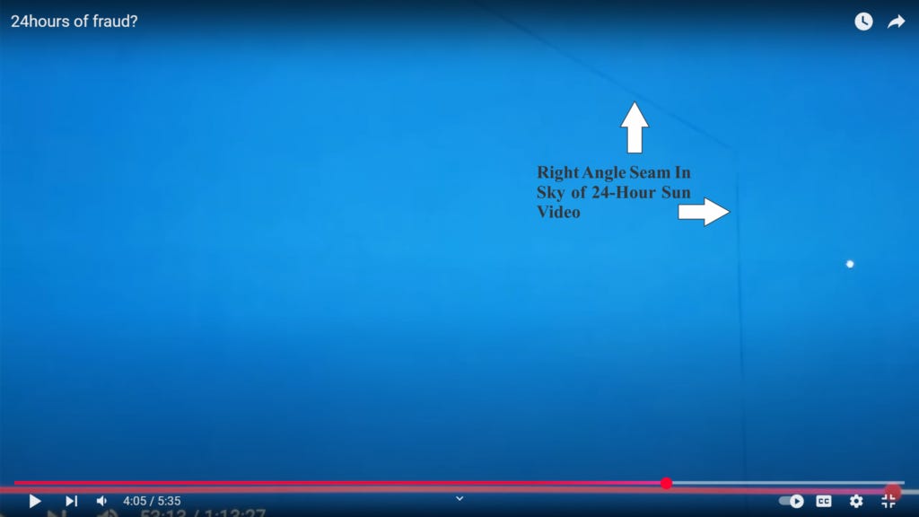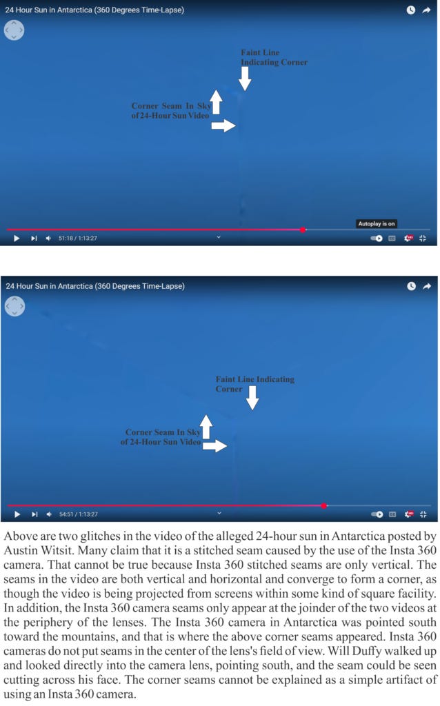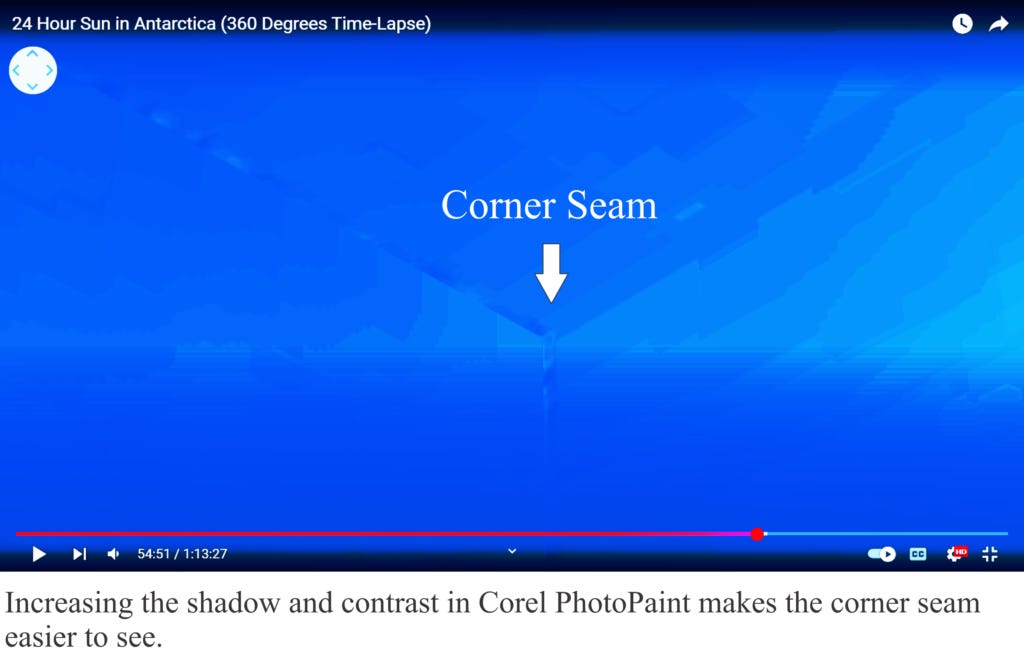 Right angle seams detected in the alleged 24-hour time-lapse of the sun in Antarctica indicates that the supposed time-lapse of the sun was actually a fake video rendering.